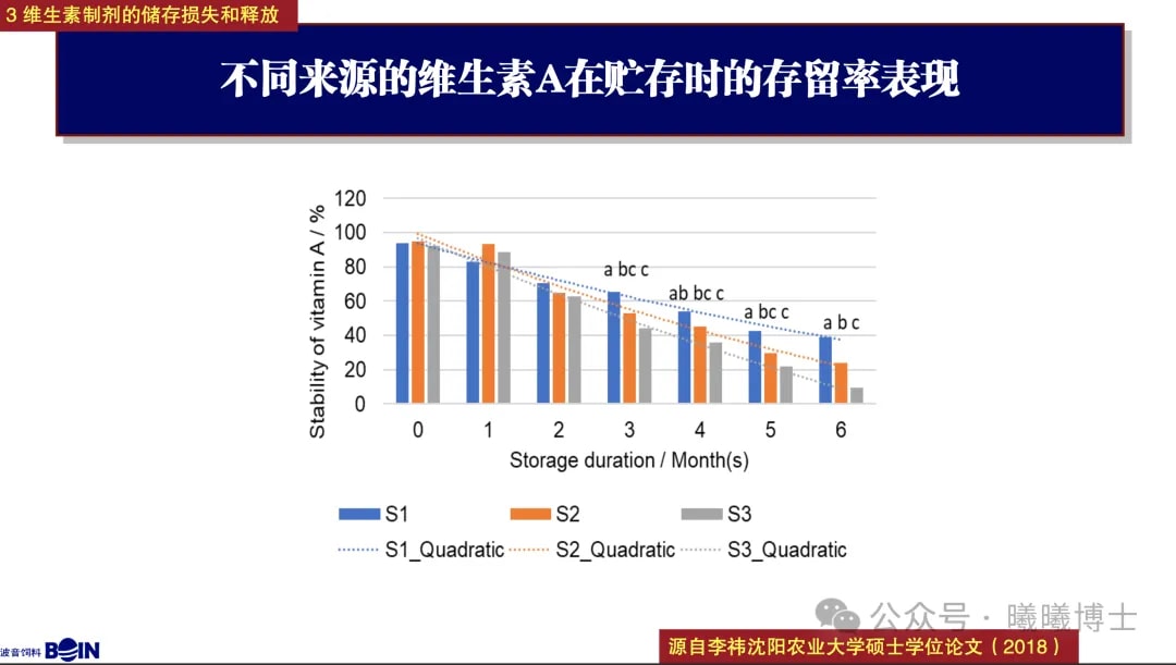 王昕陟博士:首先,即使同一個維生素養(yǎng)分、但不同的維生素制劑之間,穩(wěn)定性、有效性存在哪些差異。